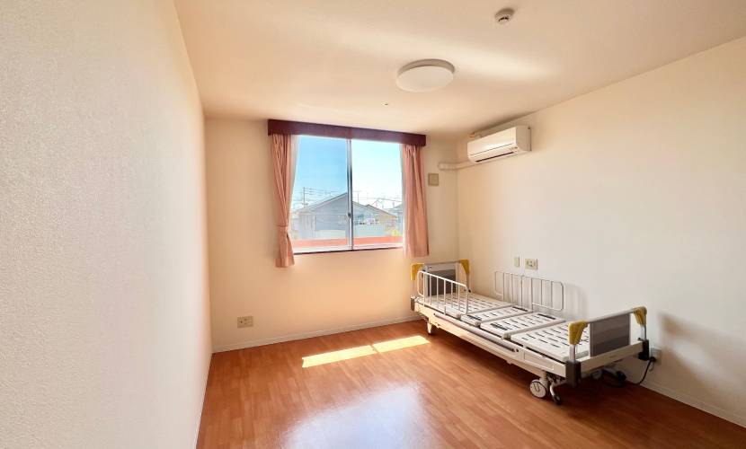 各居室は、明るい陽射しが差し込む窓と、木の温もりを感じる床材が印象的な、落ち着いた空間です。全室にトイレ・洗面台を完備し、プライバシーと快適性に配慮しています。居室の窓からは季節の移ろいを感じられる中庭が見え、四季折々の風景を楽しみながら穏やかな時間をお過ごしいただけます。安全面にも配慮した設計で安心の暮らしを支えます。