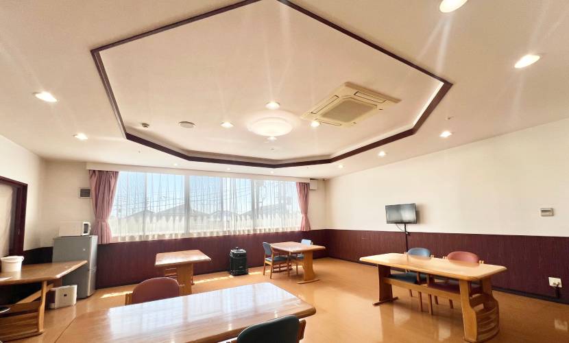 施設内 施設内(共有スペース) 2025.10.17 大きな窓から自然光が差し込む、開放的な多目的室です。食事はもちろん、レクリエーションやイベントなど、多様な用途で活用されています。明るく落ち着いた雰囲気の中で、入居者さま同士の交流が生まれる、あたたかな空間となっています。 【リビング】窓から四季を感じるくつろぎ空間 【リビング】利用者様の創作作品がお出迎え 【相談室】安心してお話しいただける相談室 【談話室】ソファに座ってゆったりと過ごすこともできます 【浴室】安心して入浴できる清潔な浴室 【浴室】介助に配慮したバリアフリー浴室 居室 前の記事 外観 次の記事